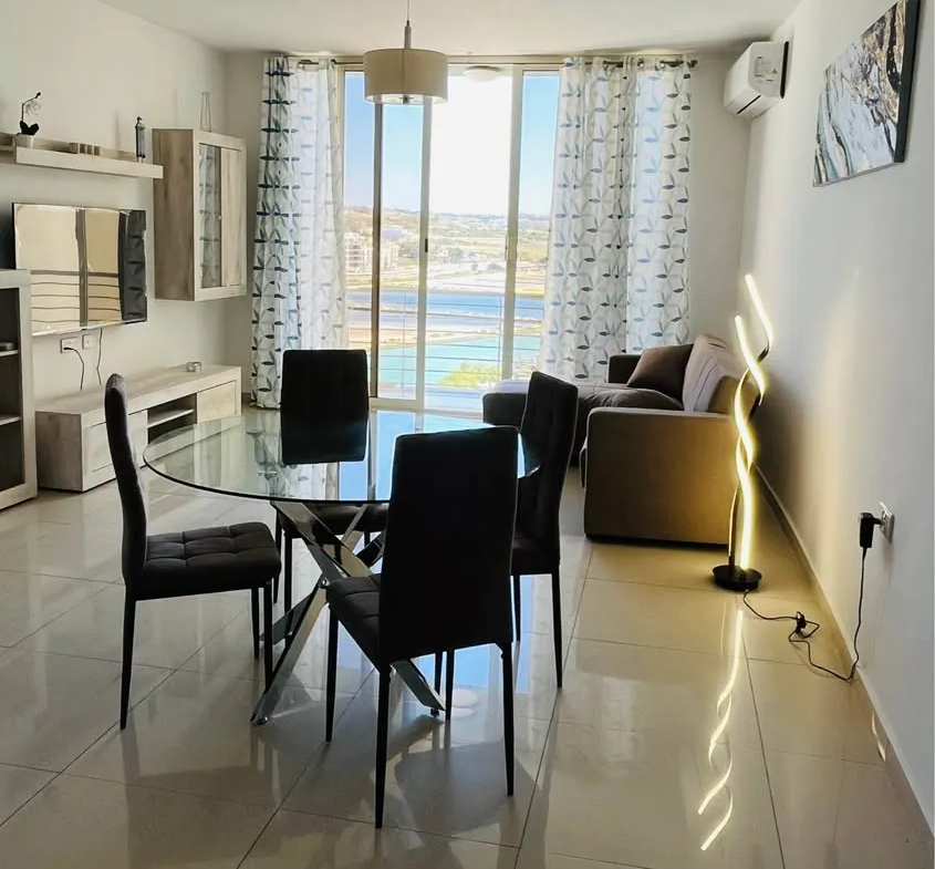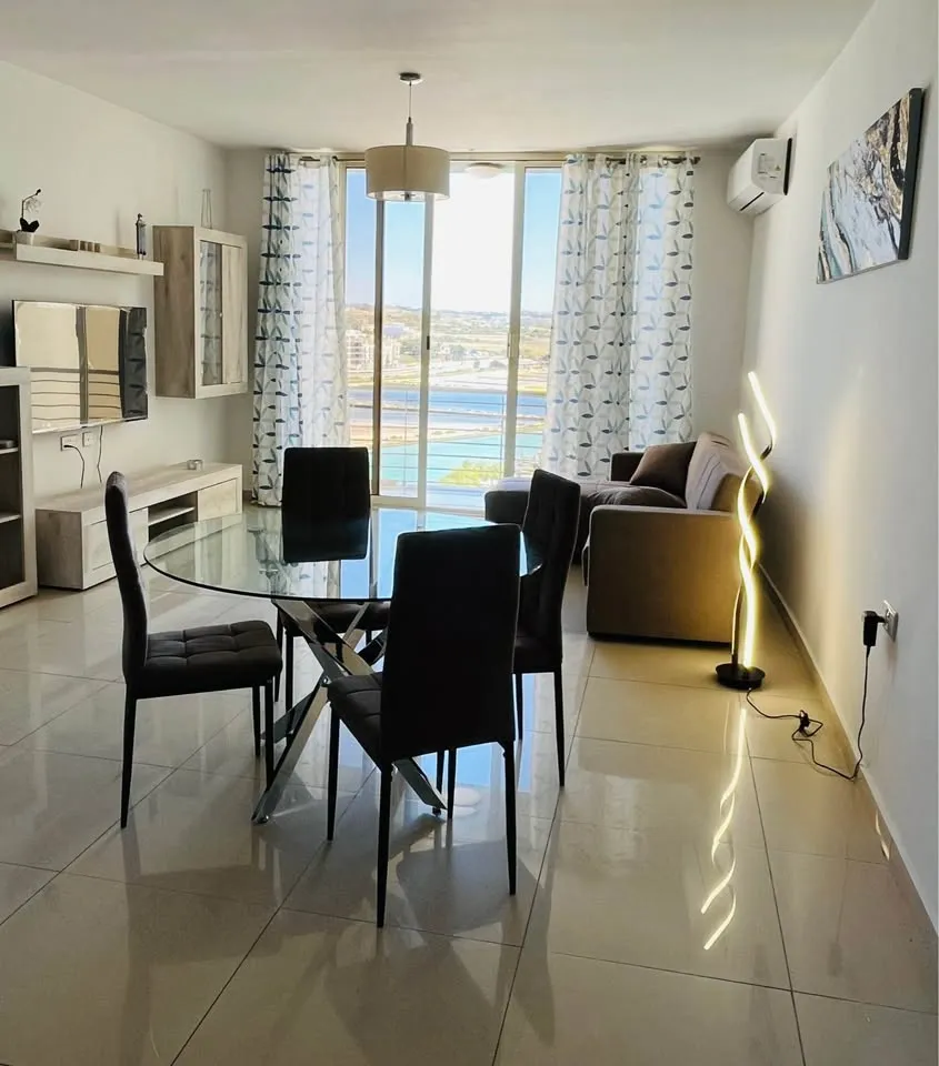 Qawra ,spacious penthouse with a fantastic Seaview up to Mdina . This property has a front terrace overlooking the bay, a kitchen – living room with a big TV , 2 very well sized bedrooms and 2 bathrooms.