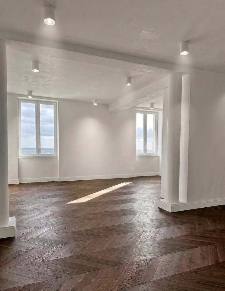 • Real oak chevron parquet throughout